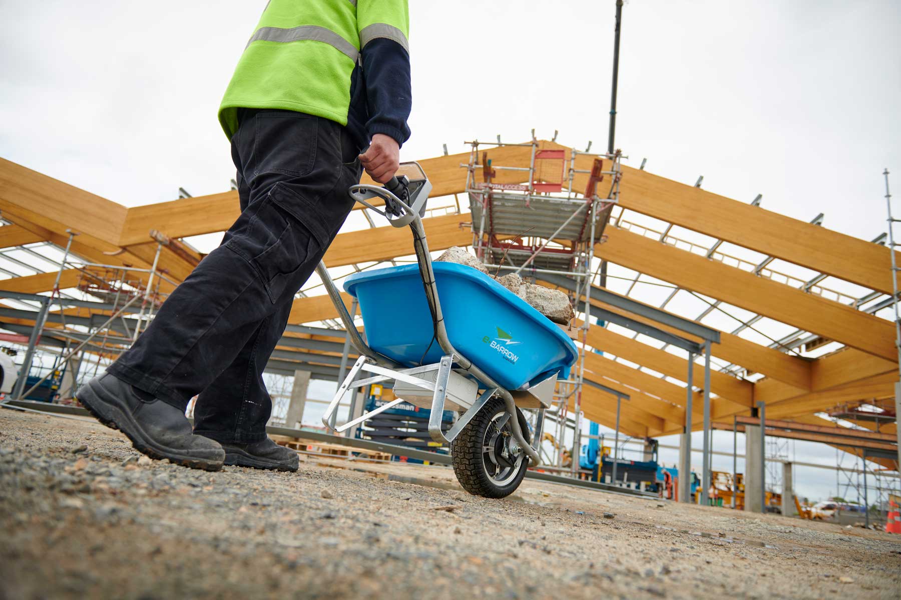 The E-Barrow does the pushing for you and comes with a tyre that is guaranteed not to go flat!